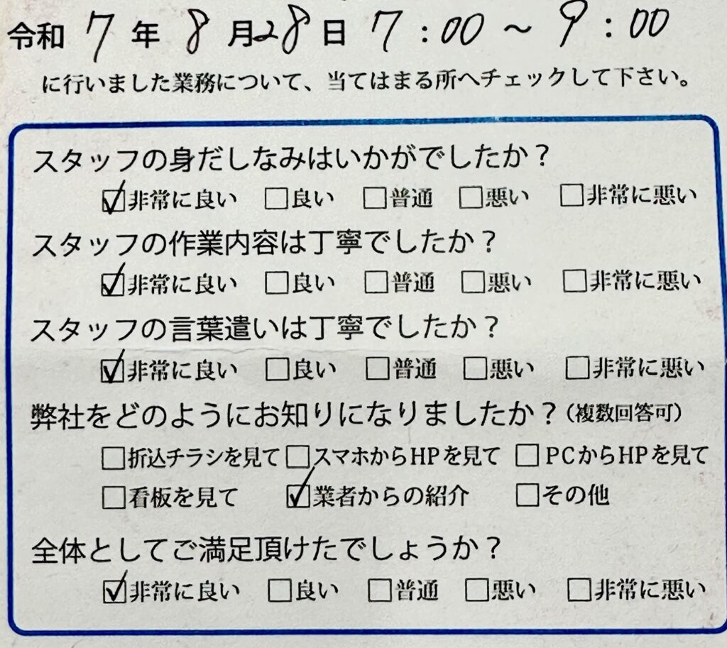 「埼玉県蓮田市 片付け・不用品回収 S様」 2025.09.29 お客様の声 目次 利用サービス お客様の声 担当者より 利用サービス 片付け・不用品回収 お客様の声 とても良い対応をしていただきました。 お世話になりました。 担当者より この度は、ご利用いただきありがとうございました。 お褒めのお言葉もありがとうございます。 また機会がございましたら、よろしくお願いいたします。